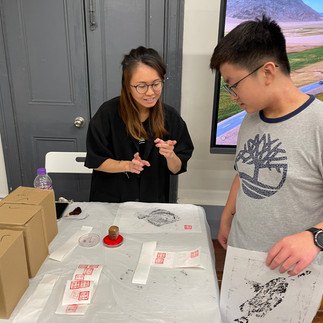 是次《傳統魚拓版畫 – 魚拓燈》工作坊,我們邀請了Tommy 擔任導師,亦因應時令挑選了紅衫魚和多寶魚為圖樣,參加者將在Tommy 的指導下,透過魚拓藝術,製作一盞魚拓燈,感受海洋這份無垠的力量。